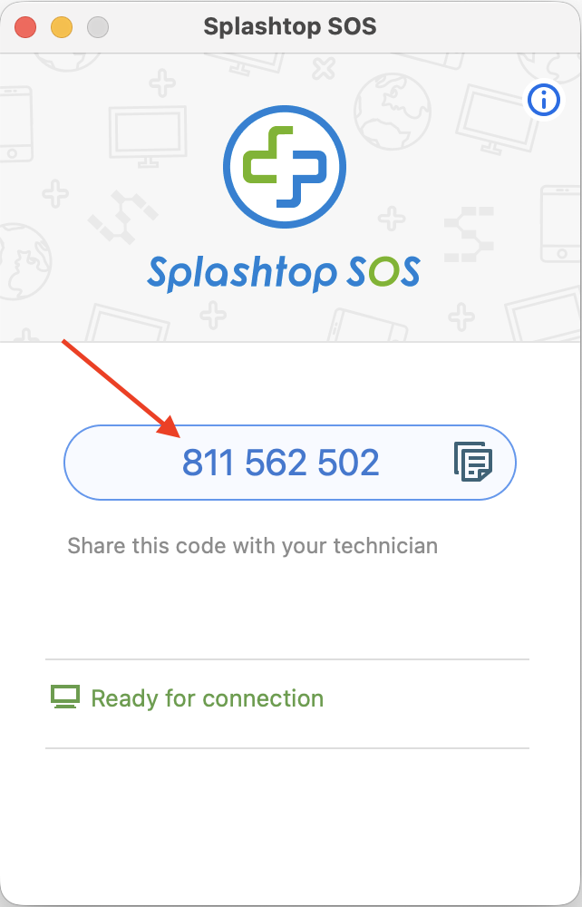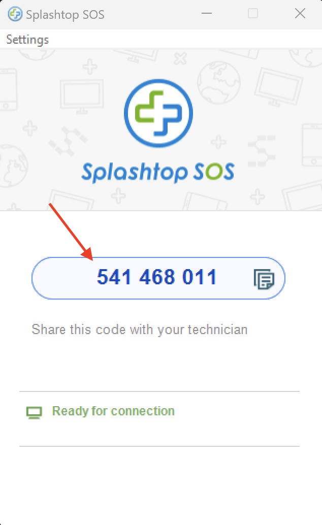 Het Splashtop scherm wordt getoond en het ID nummer opgehaald.